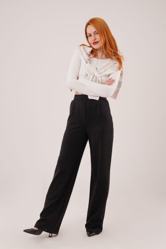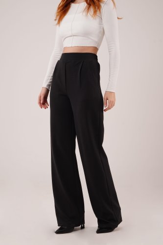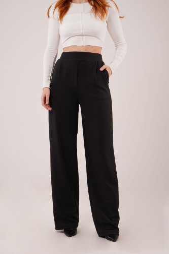 • Yüksek Bel Bol Paça Krep Siyah Pantolon