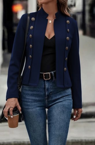 Kadın uzun kollu hakim yaka yanlardan düğmeli kısa süet ceket